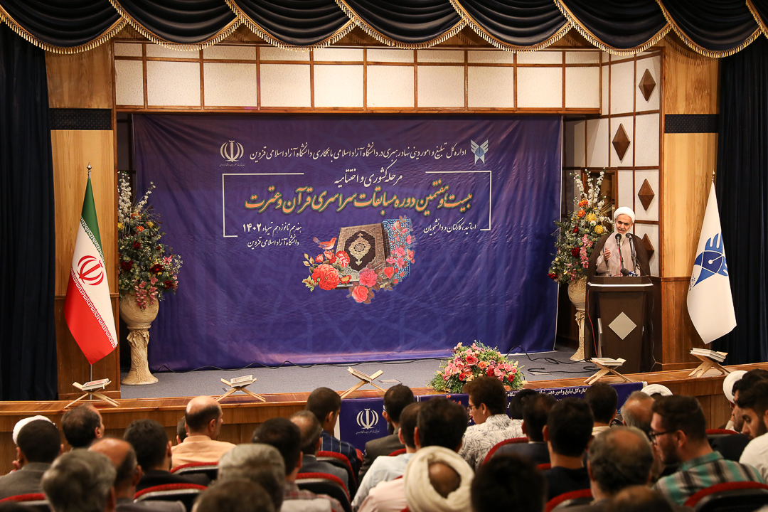اختتامیه بیست و هفتمین دوره مسابقات سراسری قرآن و عترت دانشگاه آزاد اسلامی کشور که با حضور آیتالله عابدینی نماینده ولیفقیه در استان و امام جمعه قزوین، دکتر محمدمهدی طهرانچی رئیس دانشگاه آزاد اسلامی کشور در دانشگاه آزاد اسلامی قزوین برگزار شد.