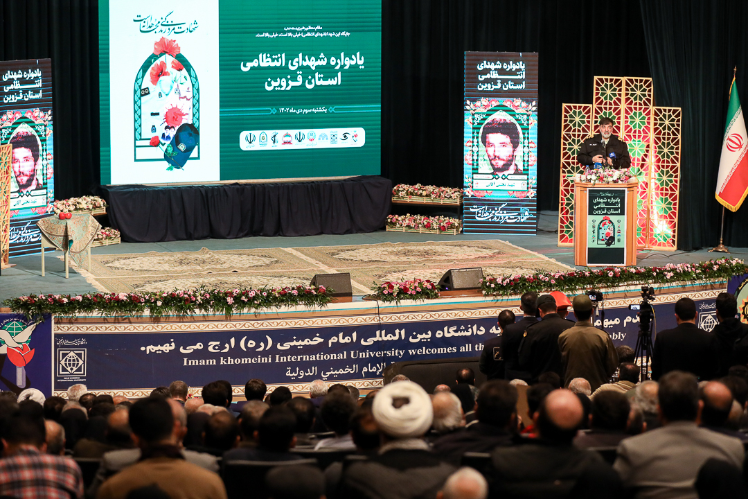 یادواره شهدای انتظامی استان قزوین با حضور سردار رادان فرمانده کل انتظامی کشور، آیت الله عابدینی نماینده ولی فقیه در استان و امام جمعه قزوین، خانواده معظم شهدا، مسئولان استانی و اقشار مختلف مردم در دانشگاه امام خمینی (ره) برگزار شد.