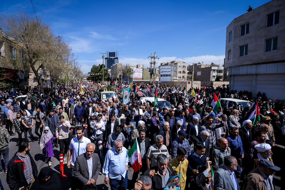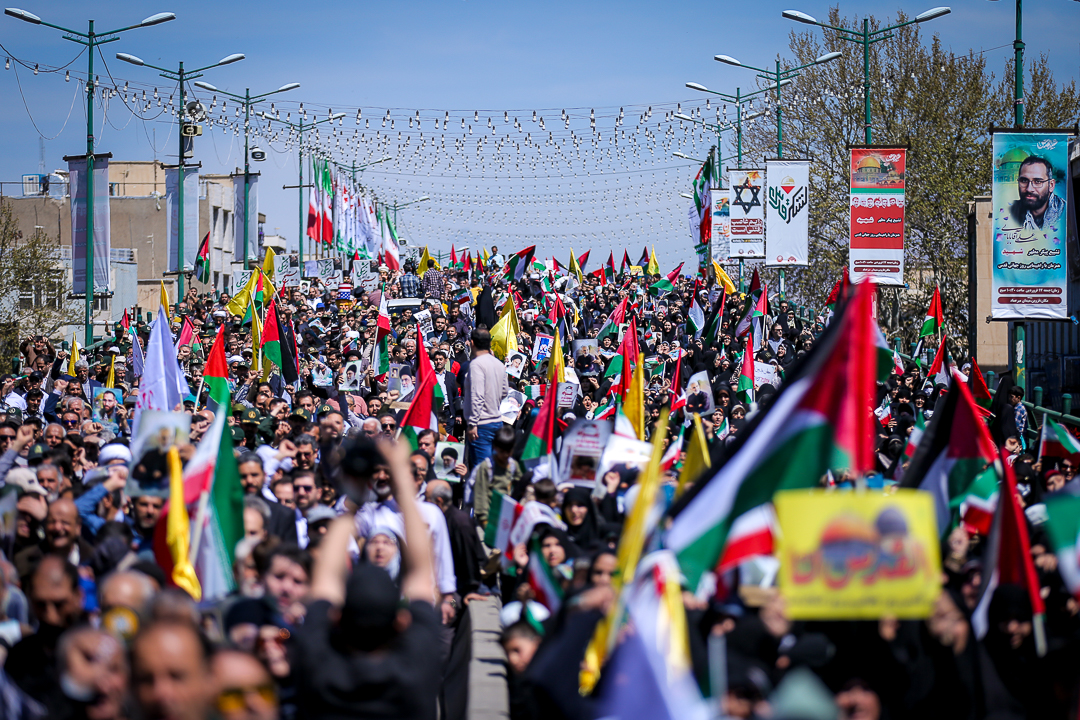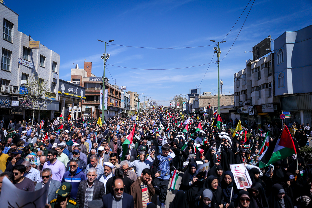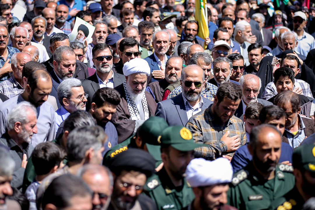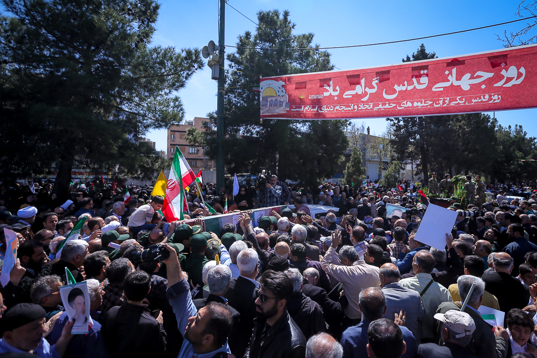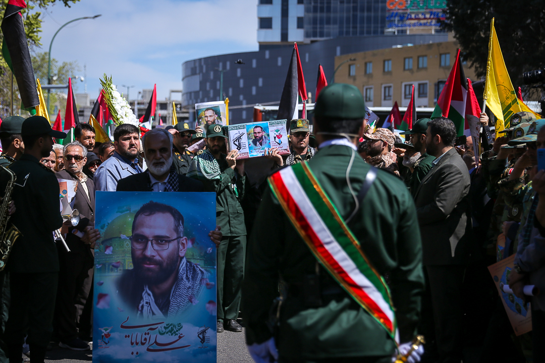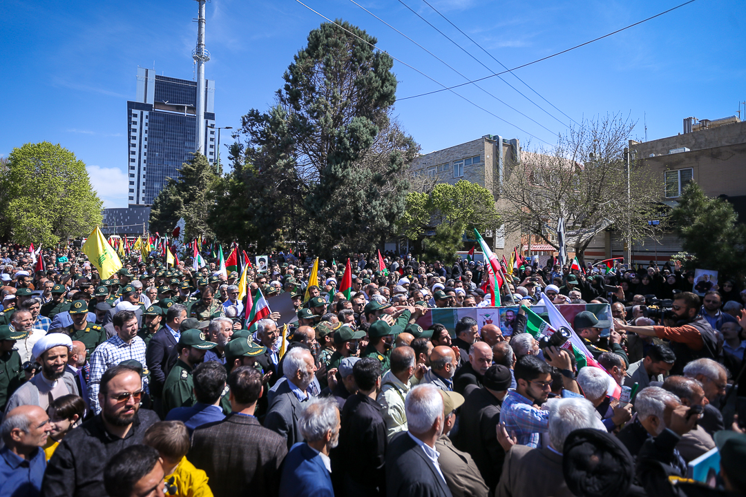 مراسم راهپیمایی روز جهانی قدس و تشییع پیکر مطهر شهید علی آقا بابایی از شهدای عملیات تروریستی رژیم صهیونیستی همزمان با آخرین جمعه ماه رمضان در قزوین برگزار شد.