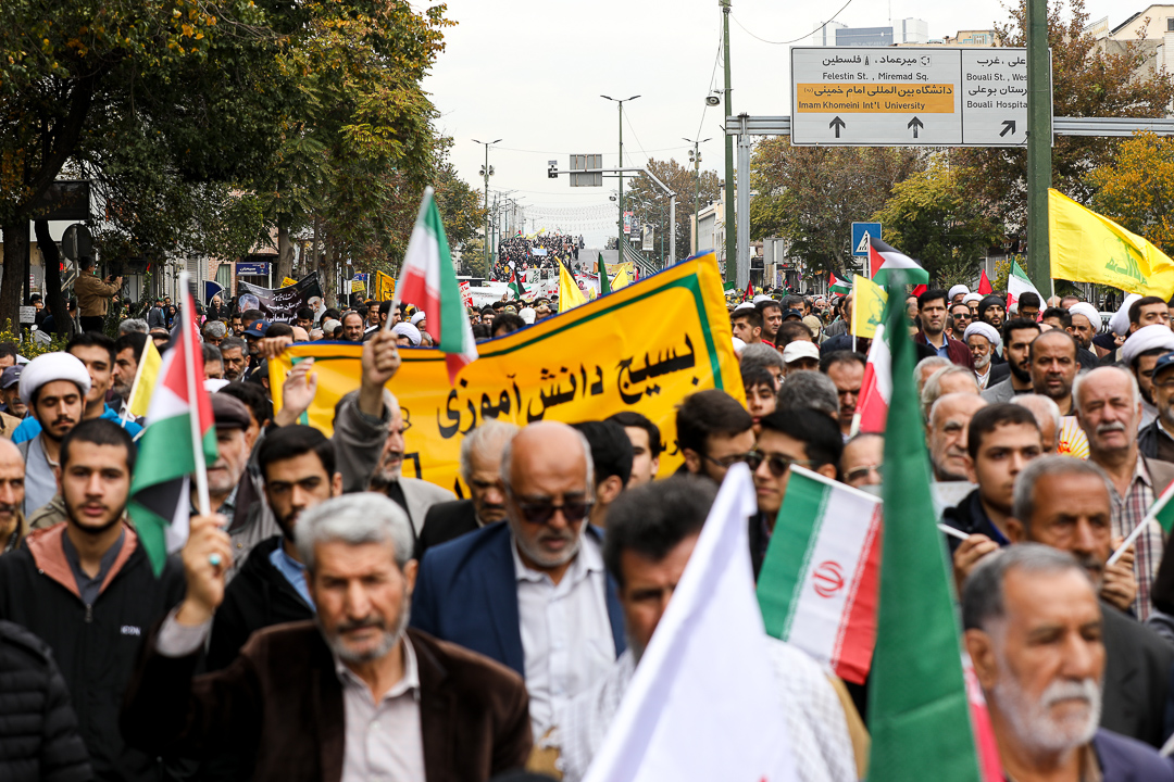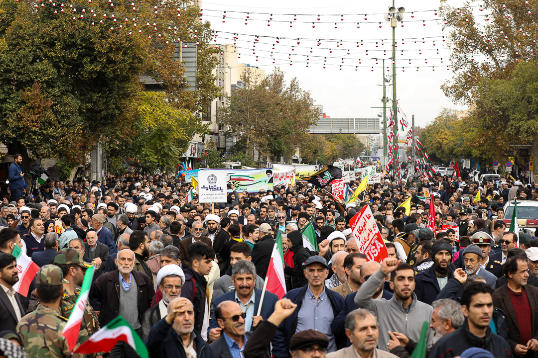 راهپیمایی یوم الله سیزه آبان، روز ملی مبارزه با استکبار جهانیُ با حضور آیت الله عابدینی نماینده ولی فقیه در استان و امام جمعه قزوین و همچنین حضور پرشور دانش آموزان، دانشجویان و اقشار مختلف مردم انقلابی از میدان میرعماد تا میدان آزادی برگزار شد.