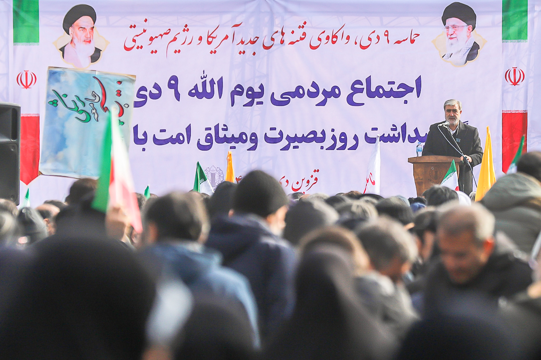 مراسم گرامیداشت حماسه ۹ دیماه با حضور باشکوه مردم قزوین، در میدان آزادی برگزار شد.