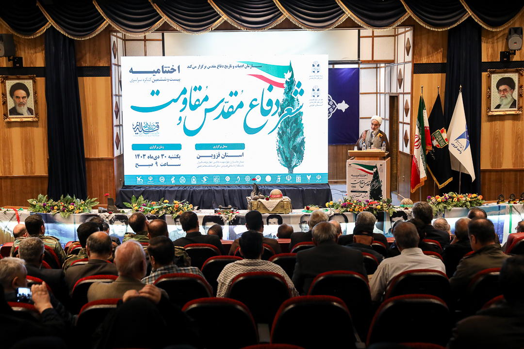 بیستوششمین کنگره سراسری شعر دفاع مقدس و مقاومت با حضور آیتالله عابدینی نماینده ولیفقیه در استان و امام جمعه قزوین، آقای نوذری استاندار قزوین، سرتیپ ستاد نبی سهرابی جانشین رئیس بنیاد حفظ آثار و نشر ارزشهای دفاع مقدس و آقای علیرضا غزوه از شعرای برجسته کشور برگزار و از برگزیدگان تجلیل شد.