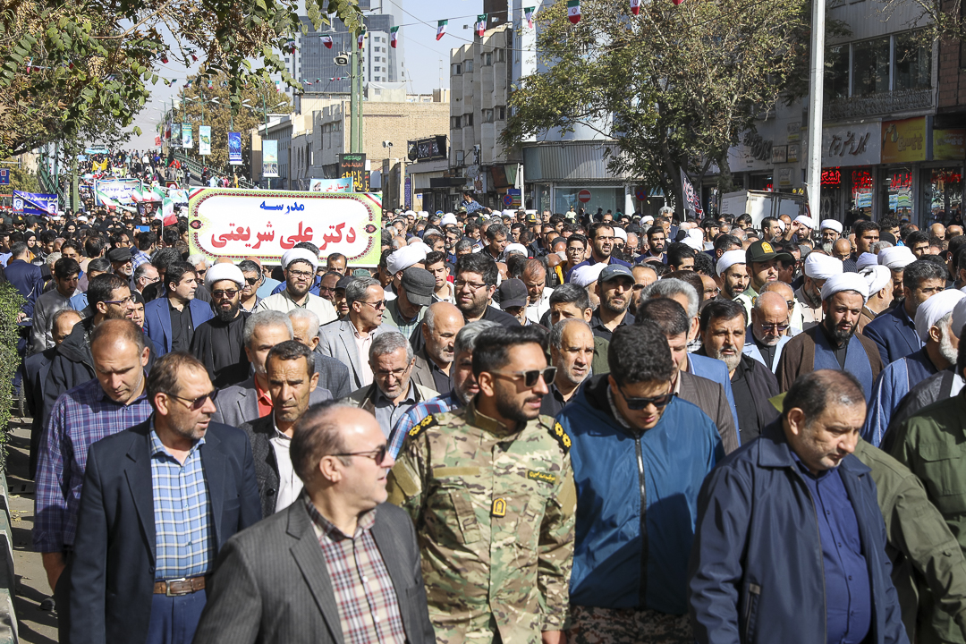 همزمان در سراسر کشور، راهپیمایی ۱۳ آبان با حضور پرشور و حماسی اقشار مختلف مردم در قزوین برگزار شد. آیتالله مظفری نماینده ولیفقیه در استان و امام جمعه قزوین همگام با مردم و مسئولان در این راهپیمایی حضور یافت.