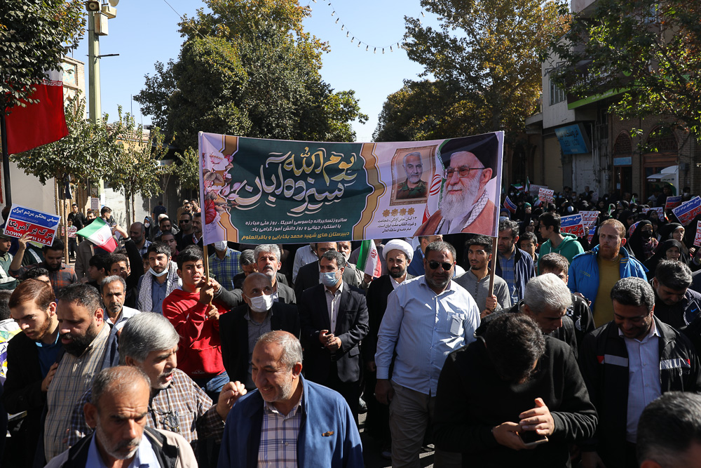 راهپیمایی یوم الله ۱۳ آبان روز ملی استکبارستیزی، جمعه ۱۳ آبان ۱۴۰۱ با حضور اقشار مختلف مردم مؤمن و اتقلابی از میدان میرعماد به سمت میعادگاه نماز جمعه شهر قزوین برگزار شد.